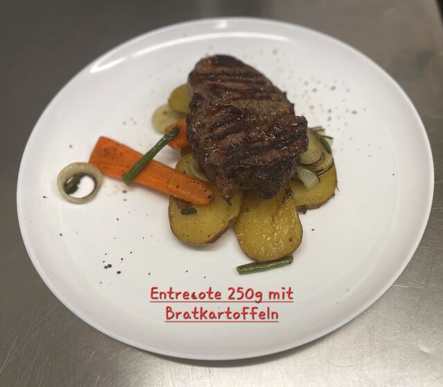 wahlweise Brust oder Keule von der Martinsgans, serviert mit Kartoffelklößen, Rotkohl, Bratensauce und einer Salatbeilage